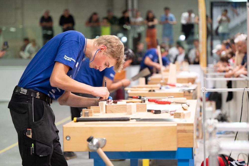 In der Spezialdisziplin „Powerschreiner” hatten Lernende Schreinerinnen und Schreiner die Chance, sich mit anderen Lernenden zu messen und den begehrten Titel „Powerschreiner Cup” zu ergattern. Die 12 Finalistinnen und Finalisten haben am Finale an den SwissSkills 2025 teilgenommen. Im Finale setzte sich der Vorjahressieger Jerome Barrot erneut durch, gefolgt von Alois Suter und Anita Arnold. Herzliche Gratulation!